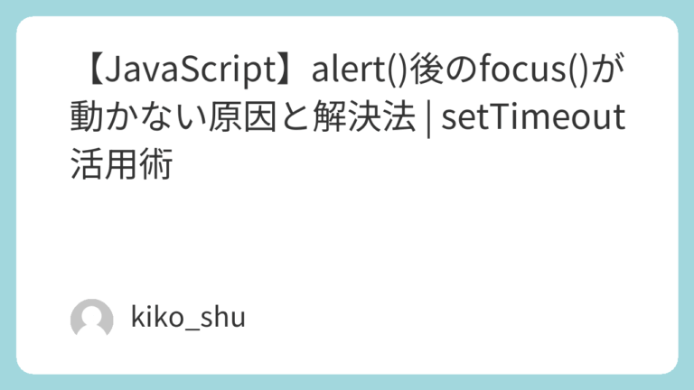 2025-12-03 Eatransform 【JavaScript】alert()後のfocus()が動かない原因と解決法 | setTimeout活用術 JavaScriptの罠:alert()後のfocus()が... 続きを読む