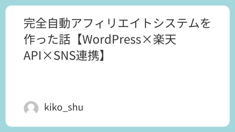 2025-12-06 Eatransform 完全自動アフィリエイトシステムを作った話【WordPress×楽天API×SNS連携】 なぜこのシステムを作ったのか ブログ運営を続けたい。でも、毎... 続きを読む