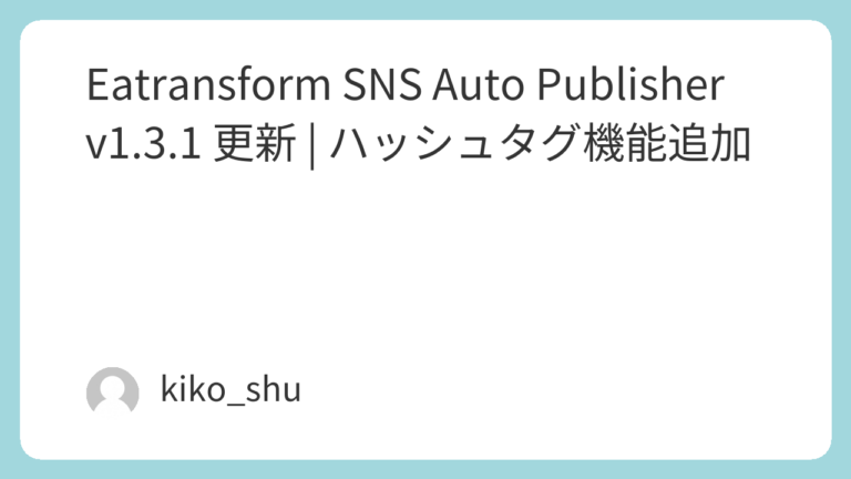 2025-12-16 Eatransform Eatransform SNS Auto Publisher v1.3.1 更新 | ハッシュタグ機能追加 プラグイン更新のお知らせ Eatransform SNS A... 続きを読む